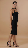 Curve killer and body-hugging vibes are what it is with our ZADIQUE Bodycon Dress.  Featuring a sexy halter neck turned choker with a gold glam buckle design, the chic silhouette outlines your body to highlight your curves. The stretchy fabric will snatch you in all the right spots.
